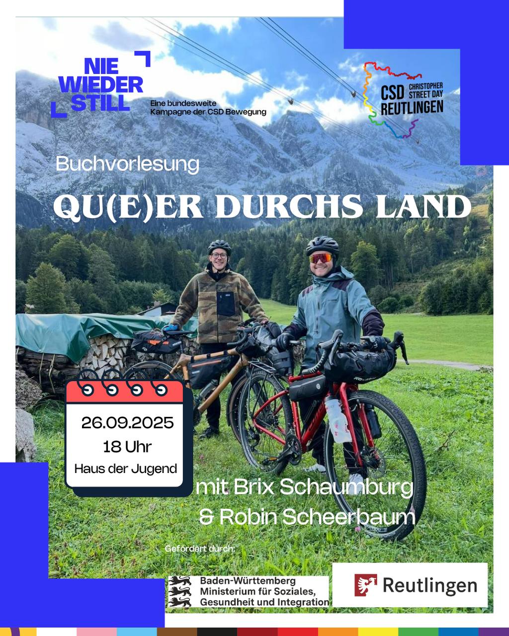 Ein herzliches Dankeschön geht an die Stadt Reutlingen – Amt für Integration und Gleichstellung und an das Sozialministerium Baden-Württemberg welches uns mit dem Projekt „SICHTweisen vernetzen“ in der Stadt Reutlingen im Rahmen des Aktionsplans „Für Akzeptanz & gleiche Rechte“ 2025 unterstützt.